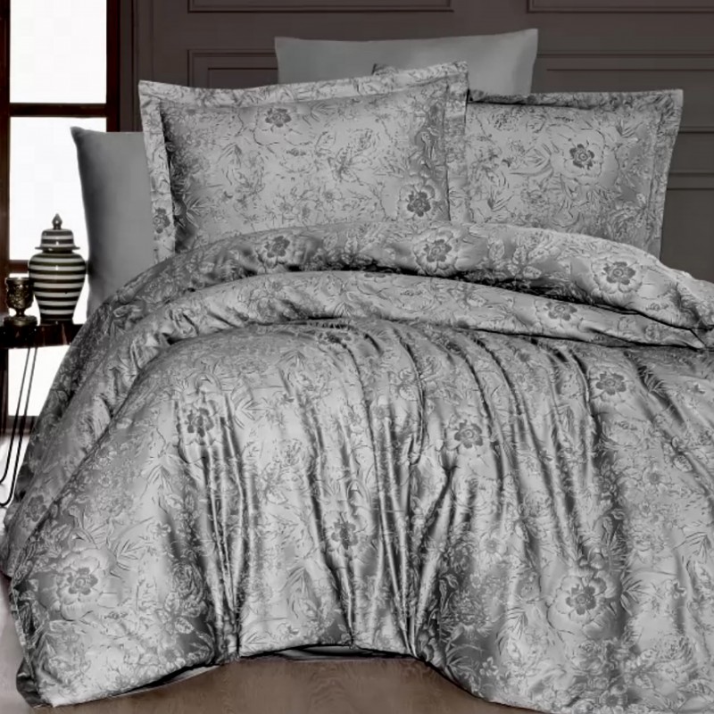 Спален комплект с 2 плика памучен сатен - АДВИНА сиво