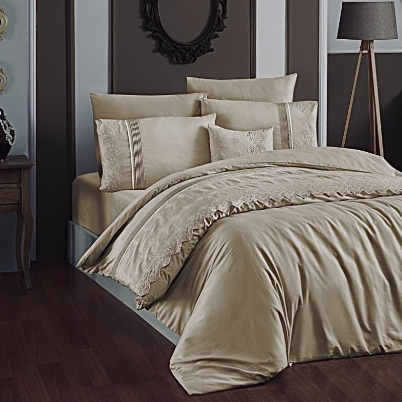 Спален комплект с бродерия VIP - СТЕЛА бежово