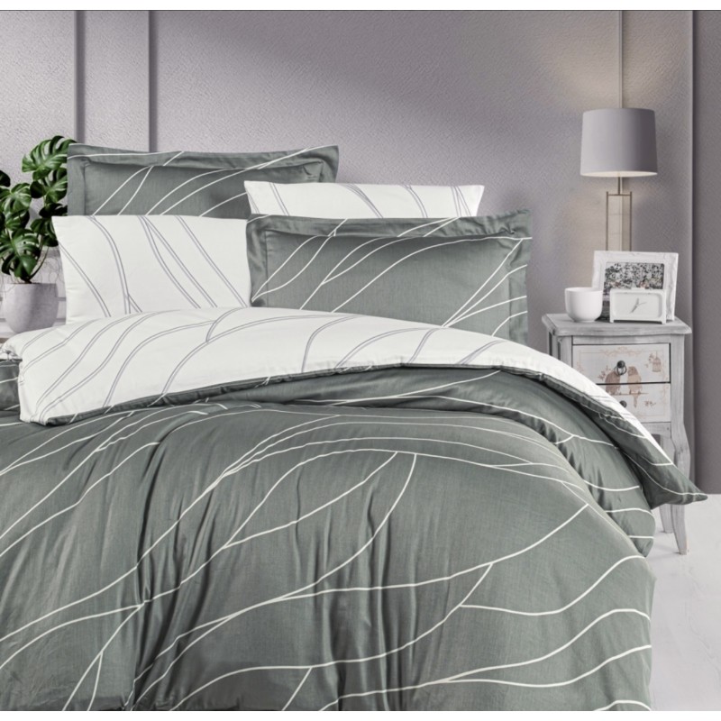 Спален комплект памучен сатен - МЕСИ зелено-сиво