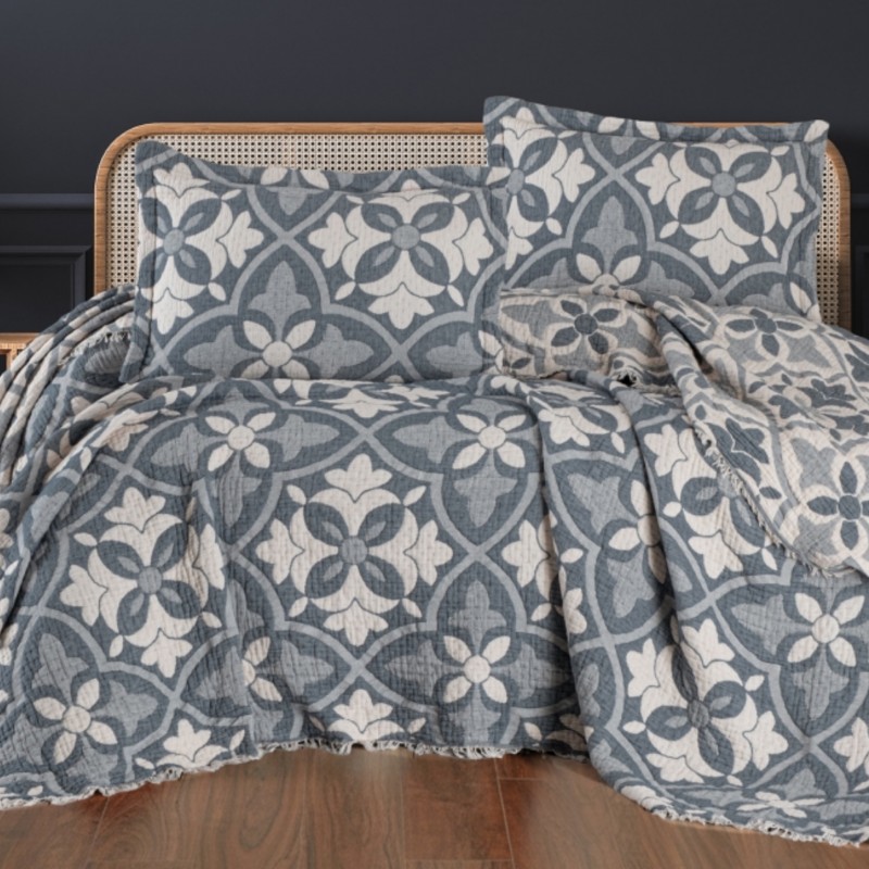 Комплект покривало 240/260 с калъфки МУСЕЛИН - ПАНДОРА синьо