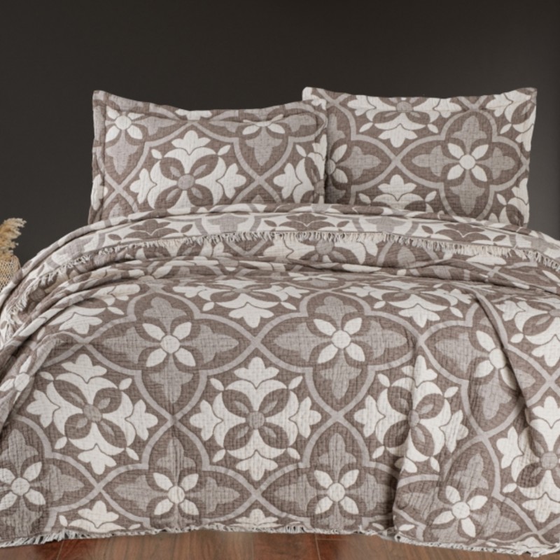 Комплект покривало 240/260 с калъфки МУСЕЛИН - ПАНДОРА кафе