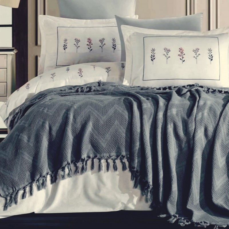 ПАМУЧНО ПОКРИВАЛО Тъмно сиво-синьо 220/235